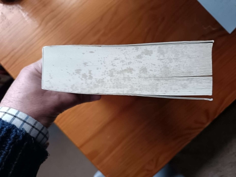 Tem manchas no exterior das folhas, no cimo do livro e principalmente no fundo, onde está muito manchado (fotografia 3).