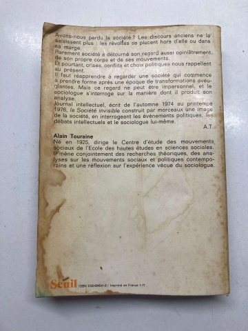 Journal intellectuel, écrit de l'automne 1974 au printemps 1976, la Société invisible construit par morceaux une image de la société, en interrogeant les événements politiques, les débats intellectuels et le sociologue lui-même.