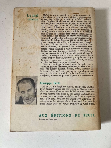 Sinopse: Simultaneamente um romance e a história de um tratamento psicanalítico, 'O mal obscuro' é um livro de intensidade fora do comum. Publicado em 1964, conquistou de saída dois dos mais importantes prêmios literários italianos, colocando o nome de seu autor ao lado dos escritores maiores do século XX, como Italo Svevo (a quem este livro se refere com freqüência) e Carlo Emilio Gadda, que assina o posfácio desta edição.