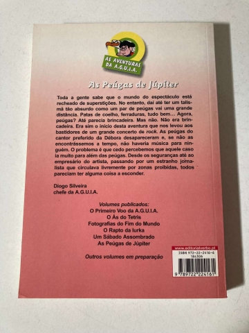 Sinopse: Os membros da A.G.U.I.A. tentam desvendar um mistério passado nos bastidores do mundo do espectáculo, repleto de superstições. Mas daí a ter como talismã um par de peúgas vai uma grande distância. Embora possa parecer brincadeira, esta aventura leva os jovens detectives aos bastidores de um grande concerto de rock. As peúgas do cantor preferido da Débora desapareceram e, se não as encontrarem a tempo, não haverá concerto para ninguém. Mas cedo os detectives se apercebem de que aquele caso vai muito para além das peúgas. Desde seguranças até ao empresário do artista, passando por um estranho jornalista que circula livremente por zonas interditas, todos parecem ter algo a esconder. Irão os nossos dectectives conseguir desvendar todo o mistério?