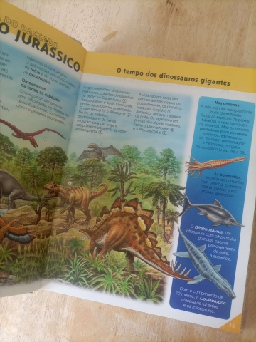 Este volume da “Enciclopédia” é dedicada aos apaixonados pelos dinossauros e pela pré – história, a partir dos 8 anos. São descritos e soberbamente ilustrados, mais de 80 dinossauros; a vida dos primeiros homens é retratada com todos os pormenores. Com muitas imagens e textos repletos de informação, esta obra desvendará todos os segredos dos tempos pré-históricos às crianças.