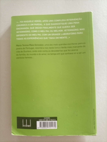 Maria Teresa Maia Gonzalez, uma das mais queridas escritoras para jovens de Portugal, relembra-nos neste livro o Verão mais marcante da vida de Gustavo, onde este conta as descobertas que fez acerca da família, do mundo e do amor, no tempo em que sonhava vir a ser cientista famoso...