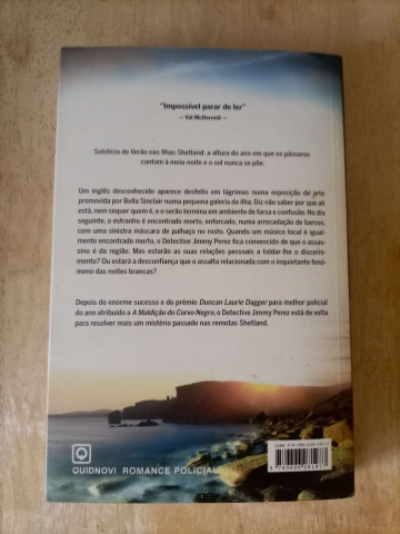 Solstício de Verão nas Ilhas Shetland: a altura do ano em que os pássaros cantam à meia-noite e o sol nunca se põe. Um inglês desconhecido aparece desfeito em lágrimas numa exposição de arte promovida por Bella Sinclair numa pequena galeria da ilha e diz não saber por que ali está, nem sequer quem é. O serão termina em ambiente de farsa e confusão. No dia seguinte, o estranho é encontrado morto, enforcado, numa arrecadação barcos, com uma sinistra máscara de palhaço no rosto. Quando um músico local é igualmente encontrado...