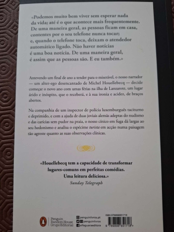 Antevendo um final de ano a tender para o miserável, o nosso narrador - um alter-ego desencantado de Michel Houellebecq - decide começar o novo ano com umas férias na ilha de Lanzarote, um lugar árido e inóspito, que o receberá, e à sua ironia e acidez, de braços abertos.