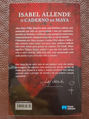 "Sou Maya Vidal, dezanove anos, sexo feminino, solteira, sem namorado por falta de oportunidade e não por esquisitice, nascida em Berkeley, Califórnia, com passaporte americano, temporariamente refugiada numa ilha no sul do mundo. Chamaram-me Maya porque a minha Nini adora a Índia e não ocorreu outro nome aos meus pais, embora tenham tido nove meses para pensar no assunto. Em hindi, Maya significa feitiço, ilusão, sonho, o que não tem nada a ver com o meu carácter. Átila teria sido mais apropriado, pois onde ponho o pé a erva não volta a crescer."