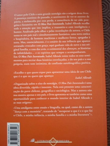 O amor pelo Chile e uma grande nostalgia são a origem deste livro. A presença contínua do passado, o sentimento de ver-se ausente da pátria, a melancolia por essa perda, a consciência de ter sido peregrina e forasteira: em O Meu País Inventado, Isabel Allende recolhe toda a emoção causada pelo seu afastamento e transmite-a com inteligência e humor. Analisado pelo olhar e pelas recordações da autora, o Chile torna-se um país real e simultaneamente fantástico, uma terra estoica e hospitaleira, de homens machistas e mulheres fortes, apegadas à terra. Mas, essencialmente, é o cenário da sua infância que aparece retratado: evocados com graça, aqui ganham vida de novo a sua original família, a casa dos avós, o cerimonial dos almoços, as histórias entrelaçadas, a do seu país e a sua própria, num tom intimista, de poética confissão autobiográfica.