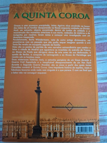 Duas incógnitas histórias reais, a estranha peripécia de um Goya durante a Guerra Civil Espanhola e o inexplicável desaparecimento de um Van Dyck durante a Segunda Guerra Mundial, são os eixos a partir dos quais Javier Gonzalez constrói A Quinta Coroa.