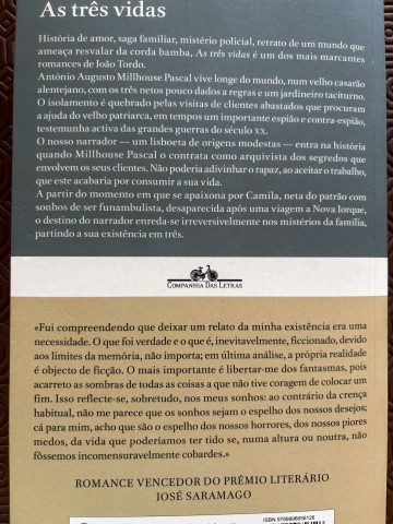 História de amor, saga familiar, mistério policial, retrato de um mundo que ameaça resvalar da corda bamba, Três Vidas é um dos mais importantes romances de João Tordo, tendo-lhe valido o Prémio Literário José Saramago.