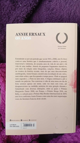 Estendendo-se por um período que vai de 1941 a 2006, em Os Anos conta-se uma história que é simultaneamente coletiva e pessoal, transversal e intimista, de sessenta anos da vida de um país e da vida de uma mulher. Através de pequenos fragmentos narrativos, por meio da relação entre fotografias, canções, filmes, objetos ou eventos da história recente, mais do que uma desconcertante autobiografia, Annie Ernaux constrói uma recordação de um «nós», num relato sobre o que fica quando o tempo passa: «Tudo se apagará num segundo [...] Nem eu nem mim. A língua continuará a pôr o mundo em palavras. Nas conversas à volta de uma mesa em dia de festa seremos apenas um nome, cada vez mais sem rosto, até desaparecermos na multidão anónima de uma geração distante.» Galardoado com diversas distinções, entre as quais o Prémio Marguerite Duras 2008, em França, o Prémio Strega 2016, em Itália, e a seleção para o Prémio Man Booker Internacional de 2019, este livro confirmou Annie Ernaux como uma das mais importantes vozes da literatura francesa deste século.