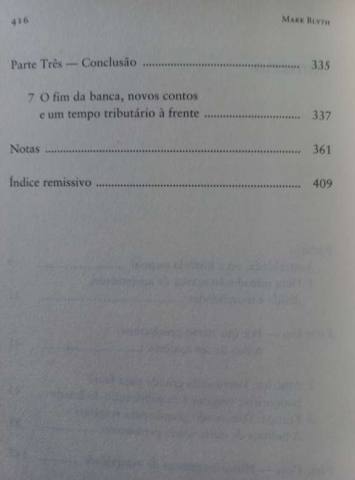 Hoje em dia, tanto na Europa como nos Estados Unidos, criticam-se os gastos do Estado como se a causa da deterioração da economia fossem apenas o desperdício e a irresponsabilidade dos governos. E para a solução da crise financeira, implementaram-se políticas draconianas de corte orçamental como uma espécie de castigo sobre os cidadãos, que são acusados de terem vivido acima dos seus meios e possibilidades - e que agora terão de "apertar o cinto". Esta visão esquece - muito convenientemente - a origem do endividamento, que não foi a orgia despesista do Estado, mas sim o resultado direto do resgate e da recapitalização do sistema bancário. Através destas operações, a dívida privada passou a ser dívida pública, e, enquanto os verdadeiros responsáveis deste processo saem impunes, o Estado arca com a culpa e os contribuintes carregam o fardo do aumento de impostos, do desemprego e da perda de direitos fundamentais. Para o economista e professor Mark Blyth, autor deste livro, a viragem global para as políticas de austeridade é uma ideia muito perigosa. Em primeiro lugar, não funciona. Como os últimos quatro anos e exemplos históricos do último século o demonstram, a tentativa do Estado em conter a despesa barrando os caminhos do crescimento até pode ter algum resultado prático, mas nunca quando todos os países o praticam em simultâneo - isso só leva à recessão global. Em segundo lugar, pedir aos inocentes (os cidadãos, os contribuintes) que paguem pelos erros dos culpados (os Estados, os grandes bancos) é sempre má política. Em terceiro lugar, a receita da austeridade apenas enriquece os ricos, não traz prosperidade para todos, contraria o princípio da igualdade de oportunidades e só leva à pobreza e à desigualdade social. Ou seja: estaremos dispostos a pagar o custo da austeridade?
