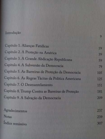 O livro a ler sobre o atual estado da política norte-americana! Apoiados em décadas de pesquisa e apresentando vários exemplos históricos pelo mundo (Hungria, Turquia, Venezuela, Peru, entre outros países), os autores mostram como morrem as democracias e de que modo se poderá salvar a democracia norte-americana.