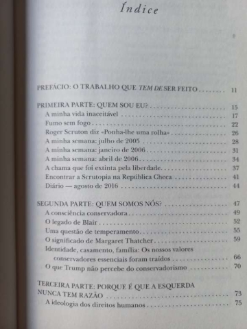 Scruton escreve com paixão e convicção sobre temas tão variados como o feminismo, o racismo, o fascismo, Tony Blair, Jeremy Corbyn e Donald Trump, e visa todos aqueles que desafiam o senso comum conservador em favor das falsidades liberais.