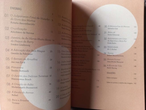 Ao longo destas páginas, irá decifrar os hieróglifos do Livro dos Mortos egípcio, encontrar novos símbolos ocultos n’O Retrado de Arnolfini, resolver os enigmas de O Jardim das Delícias Terrenas, navegar as escadarias impossíveis de M. C. Escher e até reorganizar um Mondrian!