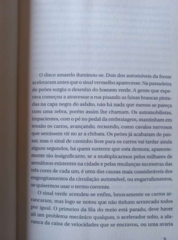 Romance contundente. Saramago a ver mais longe. Personagens sem nome. Um mundo com as contradições da espécie humana. Não se situa em nenhum tempo específico. É um tempo que pode ser ontem, hoje ou amanhã. As ideias a virem ao de cima, sempre na escrita de Saramago. A alegoria. O poder da palavra a abrir os olhos, face ao risco de uma situação terminal generalizada. A arte da escrita ao serviço da preocupação cívica.