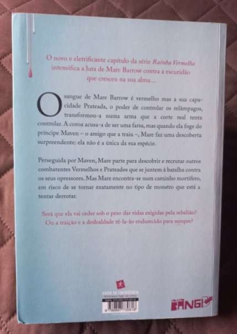 O novo e eletrificante capítulo da série Rainha Vermelha intensifica a luta de Mare Barrow contra a escuridão que cresceu na sua alma… O sangue de Mare Barrow é vermelho mas a sua capacidade Prateada, o poder de controlar os relâmpagos, transformou-a numa arma que a corte real tenta controlar. A coroa acusa-a de ser uma farsa, mas quando ela foge do príncipe Maven - o amigo que a traiu -, Mare faz uma descoberta surpreendente: ela não é a única da sua espécie.