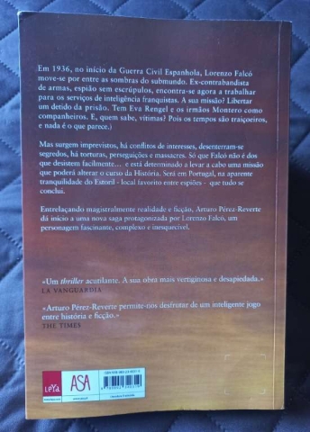 Mas surgem imprevistos, há conflitos de interesses, desenterram-se segredos, há torturas, perseguições e massacres. Só que Falcó não é dos que desistem facilmente… e está determinado a levar a cabo uma missão que poderá alterar o curso da História. Será em Portugal, na aparente tranquilidade do Estoril - local favorito entre espiões - que tudo se conclui.