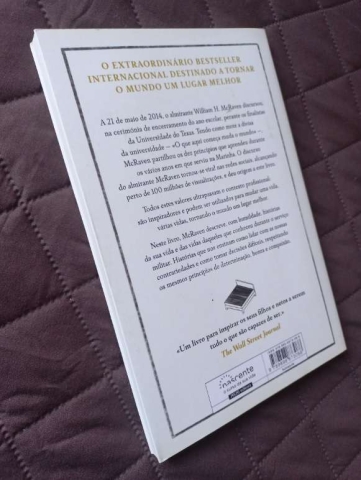O extraordinário bestseller internacional destinado a tornar o mundo um lugar melhor. A 21 de maio de 2014, o almirante William H. McRaven discursou, na cerimónia de encerramento do ano escolar, perante os finalistas da Universidade do Texas. Tendo como mote a divisa da universidade — «O que aqui começa muda o mundo» —, McRaven partilhou os dez princípios que aprendeu durante os vários anos em que serviu na Marinha. O discurso do almirante McRaven tornou-se viral nas redes sociais, alcançando perto de 100 milhões de visualizações, e deu origem a este livro. Todos estes valores ultrapassam o contexto profissional: são inspiradores e podem ser utilizados para mudar uma vida, várias vidas, tornando o mundo um lugar melhor. Neste livro, McRaven descreve, com humildade, histórias da sua vida e das vidas daqueles que conheceu durante o serviço militar. Histórias que nos ensinam como lidar com as nossas contrariedades e como tomar decisões difíceis, respeitando os mesmos princípios de determinação, honra e compaixão.