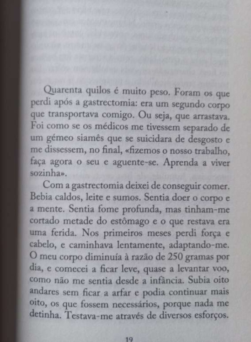 Maria Luísa, a heroína deste romance, é uma bela rapariga, inteligente, boa aluna, voluntariosa e com uma forte personalidade. Mas é gorda. E isto, esta característica física, incomoda-a de tal modo que coloca tudo o resto em causa. Na adolescência sofre, e aguenta em silêncio, as piadas e os insultos dos colegas, fica esquecida, ao lado da mais feia das suas colegas, no baile dos finalistas do colégio. Mas não desiste, não se verga, e vai em frente, gorda, à procura de uma vida que valha a pena viver.