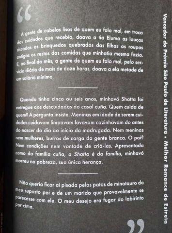 Tendo a vida (e a morte) de tia Eluma como ponto de partida, a narradora puxa o fio que se estende à sua primeira antepassada conhecida da linha materna, passando por outras parentes suas que, para ali chegarem, limparam os pés nas pedras dos arroios e lavaram a roupa suja dos brancos.