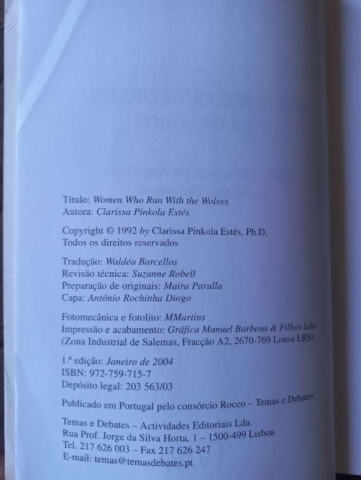 Existe no interior de cada mulher uma força poderosa, feita de bons instintos, de uma criatividade apaixonada e de um conhecimento imemorial. É a Mulher Selvagem, a representação da natureza instintiva da mulher. Ainda assim, uma espécie em extinção. Neste Mulheres Que Correm com os Lobos, a Doutora Estés revela lendas, contos populares e histórias inter-culturais de grande riqueza, a maioria originária na sua própria família, de modo a ajudar as mulheres a restabelecerem os elos com os atributos visionários, saudáveis e selvagens da sua natureza instintiva. Através das histórias e narrativas contidas neste livro notável, recuperamos, apreciamos, amamos e compreendemos a Mulher Selvagem, conservando-a na profundeza das suas psiques enquanto ser mágico e paliativo.