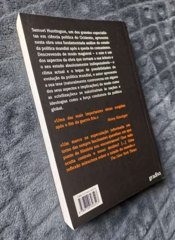 Samuel Huntington, um dos grandes especialistas em ciência política do Ocidente, apresenta nesta obra uma fundamentada análise do estado da política mundial após a queda do comunismo. Descrevendo de modo magistral -- e este é um dos aspectos da obra que torna a sua leitura e o seu estudo absolutamente indispensáveis -- o clima actual e o leque de possibilidades da evolução da política mundial, o autor apresenta a sua tese (naturalmente controversa em alguns dos seus aspectos e implicações) do modo como as «civilizações» se substituíram às nações e ideologias como a força condutora da política global.