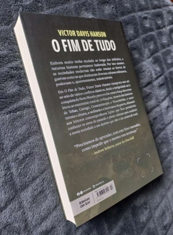 Em O Fim de Tudo, Victor Davis Hanson transporta-nos até ao seio de vários conflitos clássicos, desde a Antiguidade até à conquista do Novo Mundo, para revelar como a força das armas levou ao extermínio total de civilizações. Através das histórias de Tebas, Cartago, Constantinopla e Tenochtitlán, o autor retrata o drama, a violência e a insensatez da guerra, deixando aos leitores contemporâneos lições que lhes permitirão conhecer os erros do passado e pistas valiosas para conduzir a nossa sociedade a um destino que não o da catástrofe total.