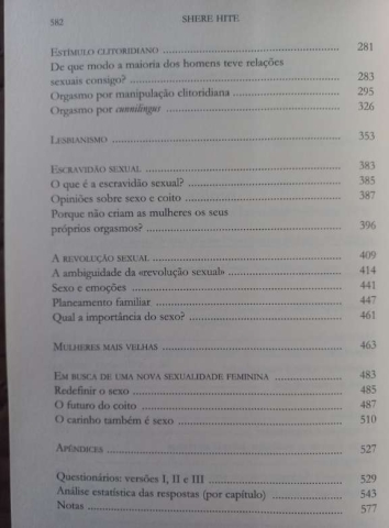 «Há alguns meses, quando procurava estatísticas sobre orgasmos femininos, dei de caras com O Relatório Hite, um livro que relata as descobertas do estudo feito com 3.000 mulheres pela sexóloga Shere Hite. Foi publicado em 1976, mas lançou muita luz sobre o vazio do orgasmo, a vergonha genital e muitas outras questões que afetam hoje a nossa vida sexual. É uma leitura obrigatória para quem quer entender a vida sexual das mulheres e como podemos melhorá-la.»