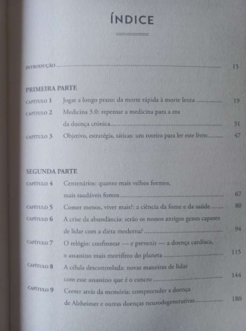 «Este livro traz-nos uma série de informações surpreendentes sobre as doenças do envelhecimento que, provavelmente, matarão a maioria das pessoas, e sobre as estratégias e as técnicas que nos podem ajudar a viver mais e com melhor saúde.»