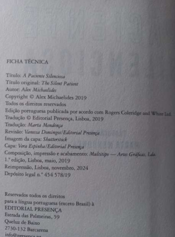 «Escrever um romance onde a protagonista permanece em silêncio não é fácil, mas esta estreia notável e envolvente - a produtora de Brad Pitt já adquiriu os direitos cinematográficos - revela que Alex Michaelides é um escritor a seguir.»