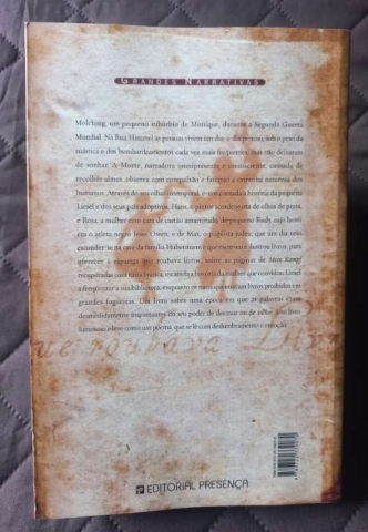 Quando a morte nos conta uma história temos todo o interesse em escutá-la. Assumindo o papel de narrador em A Rapariga Que Roubava Livros, vamos ao seu encontro na Alemanha, por ocasião da segunda guerra mundial, onde ela tem uma função muito activa na recolha de almas vítimas do conflito. E é por esta altura que se cruza pela segunda vez com Liesel, uma menina de nove anos de idade, entregue para adopção, que já tinha passado pelos olhos da morte no funeral do seu pequeno irmão. Foi aí que Liesel roubou o seu primeiro livro, o primeiro de muitos pelos quais se apaixonará e que a ajudarão a superar as dificuldades da vida, dando um sentido à sua existência. Quando o roubou, ainda não sabia ler, será com a ajuda do seu pai, um perfeito intérprete de acordeão que passará a saber percorrer o caminho das letras, exorcizando fantasmas do passado. Ao longo dos anos, Liesel continuará a dedicar-se à prática de roubar livros e a encontrar-se com a morte, que irá sempre utilizar um registo pouco sentimental embora humano e poético, atraindo a atenção de quem a lê para cada frase, cada sentido, cada palavra. Um livro soberbo que prima pela originalidade e que nos devolve um outro olhar sobre os dias da guerra no coração da Alemanha e acima de tudo pelo amor à literatura.