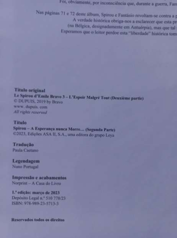 Embrenhados na tormenta da Segunda Guerra Mundial, Spirou tenta sobreviver mantendo-se fiel aos seus valores, enquanto Fantásio tenta salvar a pele...