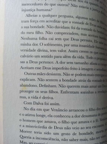 Neste seu impressionante primeiro livro, a escritora brasileira Carla Madeira socorre-se de uma linguagem sem pudores ou complexos, com uma narrativa madura, mas ao mesmo tempo poética e imagética; e dessa forma incorpora todos os extremos, sem ideias básicas de certo e errado, apresentando-nos o extraordinário mundo de mulheres fortes, fracas, com problemas e soluções, com sentimentos e desejos reais.