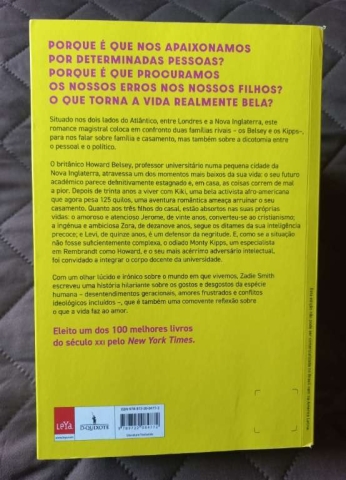 Com um olhar lúcido e irónico sobre o mundo em que vivemos, Zadie Smith escreveu uma história hilariante sobre os gostos e desgostos da espécie humana - desentendimentos geracionais, amores frustrados e conflitos ideológicos incluídos -, que é também uma comovente reflexão sobre o que a vida faz ao amor.