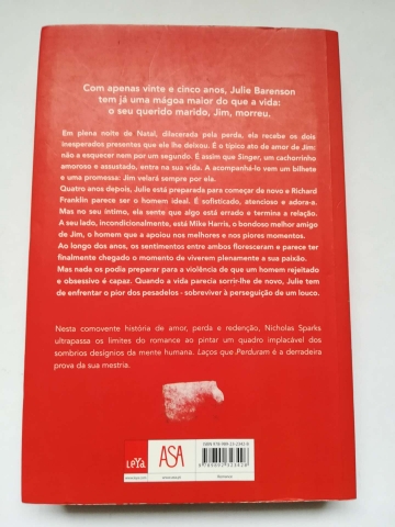 Nesta comovente história de amor, perda e redenção, Nicholas Sparks ultrapassa os limites do romance ao pintar um quadro implacável dos sombrios desígnios da mente humana. Laços que Perduram é a derradeira prova da sua mestria.