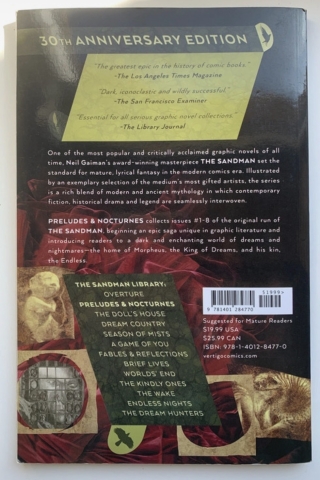 New York Times best-selling author Neil Gaiman's transcendent series THE SANDMAN is often hailed as the definitive Vertigo title and one of the finest achievements in graphic storytelling. Gaiman created an unforgettable tale of the forces that exist beyond life and death by weaving ancient mythology, folklore and fairy tales with his own distinct narrative vision. In PRELUDES and NOCTURNES, an occultist attempting to capture Death to bargain for eternal life traps her younger brother Dream instead. After his 70 year imprisonment and eventual escape, Dream, also known as Morpheus, goes on a quest for his lost objects of power. On his arduous journey Morpheus encounters Lucifer, John Constantine, and an all-powerful madman. This book also includes the story The Sound of Her Wings, which introduces us to the pragmatic and perky goth girl Death. Collects THE SANDMAN #1-8.