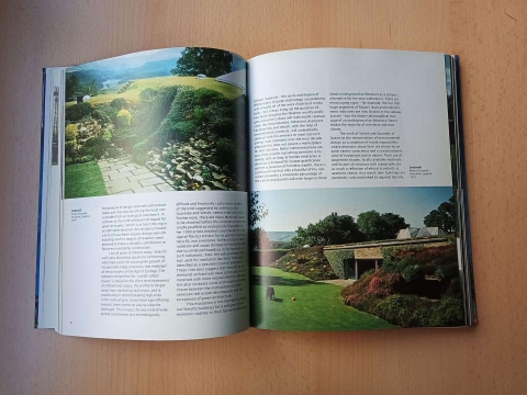 Livro de arquitetura sustentável e em comunhão com a natureza. Ilustrações com exemplares de todo o mundo.