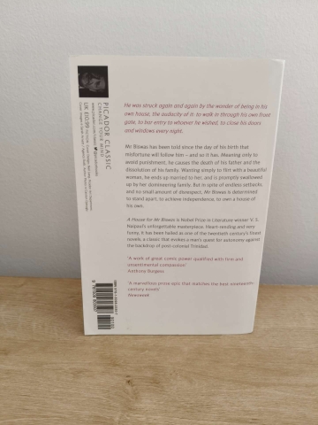 Born the 'wrong way' and thrust into a world that greeted him with little more than a bad omen, Mohun Biswas has spent his 46 years of life striving for independence. But his determined efforts have been met only with calamity. Shuttled from one residence to another after the drowning of his father, for which he is inadvertently responsible, Mr Biswas yearns for a place he can call home. He marries into the domineering Tulsi family, on whom he becomes indignantly dependent, but rebels and takes on a succession of occupations in an arduous struggle to weaken their hold over him and purchase a house of his own.