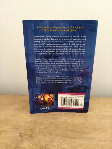 Lady Ophelia Darby exists in two worlds. In one, she is the impudent, willful daughter of a powerful marquess and darling of the ton. In the other, she moves through the underworld’s shadows as songstress Lady Starlight, protected only by the notoriously wealthy scoundrel Devlin Byrne. But when she stumbles upon her beloved father’s darkest secrets, the line between her two worlds quickly blurs. Now she needs the help of the one man a lady should never trust.