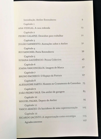 Este livro pretende antes de mais aproximar o grande público da experiência quotidiana de trabalho de um conjunto de artistas plásticos portugueses. Não é, por isso, nem um exercício de crítica de arte, nem um ensaio de teoria estética, mas antes uma reportagem que, ao olhar de perto para o espaços de produção dos artistas, quer oferecer ao leitor uma outra compreensão dos seus problemas e dificuldades, mas também das suas ideias e das preocupações, bem como do seu lugar e papel na sociedade actual.
