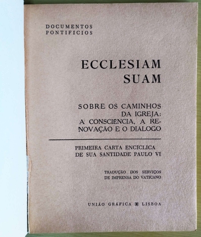 Título: Encíclica Ecclesiam Suam: Carta Encíclica sobre os caminhos da igreja: a consciência, a renovação e o diálogo - Primeira Carta Encíclica de Sua Santidade Paulo VI