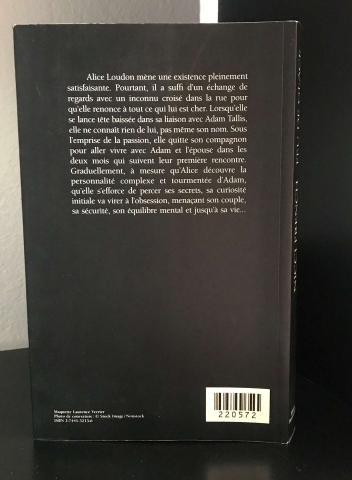 Il a suffi d'un échange de regards avec un inconnu croisé dans la rue pour qu'elle renonce à tout. Lorsqu'Alice Loudon se lance tête baissée dans sa relation avec Adam Thallis, elle ne connaît rien de lui, pas même son nom. Sous l'emprise de la passion, elle quitte son compagnon pour aller vivre avec Adam et l'épouse dans les deux mois qui suivent leur première rencontre. Mais à mesure qu'Alice découvre la personnalité complexe et tourmentée de son mari, ce qui n'était que simple curiosité va virer à l'obsession, menaçant peu à peu son couple et son équilibre mental. En fouillant dans le passé d'Adam, c'est sa propre vie qu'elle met bientôt en danger.