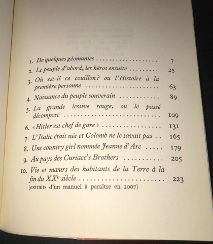 S'il fallait résumer ce livre en quatre mots - au risque de prouver, comme dit son auteur, qu'il était inutile d'en écrire davantage - nous dirions qu'il montre comment on apprend l'Histoire sur la terre... Comment on l'apprend, comment on ne l'apprend pas. Comment on la truque, comment on l'invente. Un voyage au coeur le l'enseignement de l'Histoire. A la fois essai mais aussi un peu pamphlet, ce livre nous conte avec humour et délicatesse le voyage de l'auteur à la recherche de la vérité dans l'Histoire qui comme chacun le sait est dans sa propre version des événements. Certes, chaque pays a sa propre vision de l'Histoire, mais l'auteur découvre, et, pour l'exprimer, il devient plus grave, que les idéologies sont les plus grands ennemis de la vérité historique.