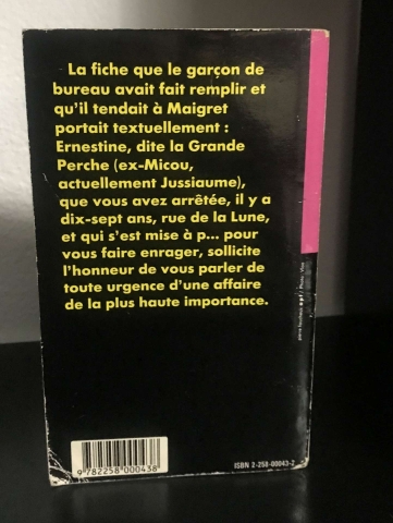 «La Grande Perche, c'est Ernestine, une prostituée qui a eu jadis maille à partir avec le commissaire Maigret. C'est à lui, dont elle a pu apprécier l'humanité et l'indulgence, qu'elle vient confier le secret qui terrorise son mari. Au cours d'un cambriolage chez un dentiste de Neuilly, il a découvert le cadavre d'une femme dans la maison. Ainsi Maigret va-t-il faire la connaissance du Dr Guillaume Serre, veuf d'une première femme et, dit-il, quitté par la seconde, une Hollandaise du nom de Maria. Maria a-t-elle vraiment regagné Amsterdam? Quels secrets ténébreux partagent le dentiste et sa mère, personnalité dominatrice dont il n'a manifestement jamais su s'affranchir? Au terme d'un face à face tendu, l'intuition et l'ascendant psychologique de Maigret l'emporteront, lui révélant les abîmes que peuvent receler des existences en apparence très ordinaires.