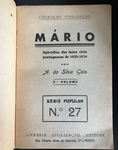 Título: Mário - Episódios das Lutas Civis Portuguesas de 1820-1834