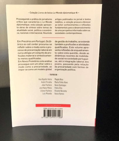 Em Precários em Portugal. Da fábrica ao call center procurou-se refletir sobre o modo como o processo de precarização laboral em curso atingia um conjunto de profissões material e simbolicamente menos qualificadas.