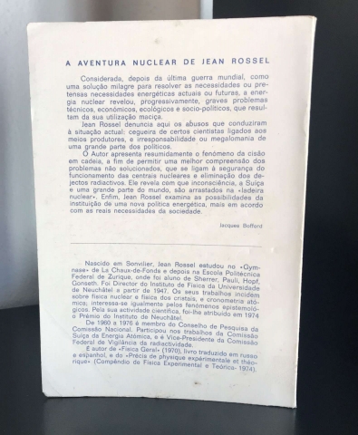 Jean Rossell denuncia aqui os abusos que conduziram à situação actual: cegueira de certos cientistas ligados aos meios produtores, e irresponsabilidade ou megalomania de uma grande parte dos políticos.