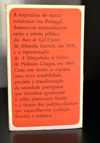 A trajectória do teatro romântico em Portugal demarca-se essencialmente entre a estreia pública do "Auto de Gil Vicente" de Almeida Garrett, em 1838, e a representação de "A Morgadinha de Valflor" de Pinheiro Chagas, em 1869.Com esse teatro se exprime uma nova sensibilidade, paralela à transformação da sociedade portuguesa que derrubou igualmente a velha aristocracia feudal e a tirania dos padrões clássicos que espartilhavam a criação literária e artística...