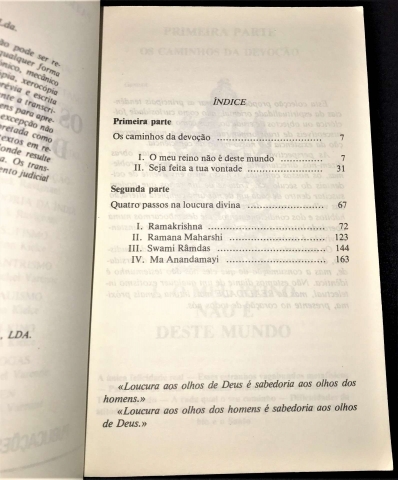 Desde a noite dos tempos, milhares de homens e de mulheres abandonam tudo, renunciam a tudo, abdicam de todo o desejo, de toda a vontade pessoal para se consagrarem inteiramente ao amor do divino, presente em cada ser e em cada coisa. Entregando-se assim, eles libertam-se de todos os conflitos e de todos os medos. O seu aparente despojamento é uma infinita riqueza.