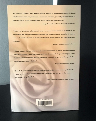 Depois de conquistar milhares de leitores com histórias do fantástico épico, Inês Botelho, neste romance, Prelúdio, muda radicalmente de cenário e conduz-nos numa viagem por um universo em que os protagonistas parecem fazer parte de um bailado que os lança num espaço onde as emoções e os sentimentos estão à flor da pele. Alheados nas rotinas do dia-a-dia são confrontados com o que não esperavam, mas enquanto Ada é movida por uma paixão pela vida, Duarte, Alice e Lídia persistem nas recordações do passado. No entanto, são impelidos para o futuro. Não há fuga, terão de continuar.
