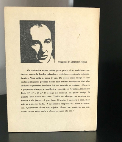 Os anúncios eram todos para gente rica: "máximo conforto", "casa de banho privativa", "telefone e entrada independente". Nem valia a pena ir ver. De resto eram longe e com certeza naqueles prédios novos com muitos mármores, dois elevadores e porteiro fardado. Só um anúncio tentava: "Quarto e pequeno-almoço, a cavalheiro respeitável, Avenida Almirante Reis, 37, 4.. O n. 37 é logo ao começo, na parte antiga. O quarto não devia ser caro. Tinha de almoçar na cantina do Banco e de jantar cá por fora. O jantar é que era o pior, mas não se pode ter tudo. "A cavalheiro respeitável" dizia o anúncio. Quereriam dizer um sujeito idoso, ou poderia ser um rapaz novo, sossegado e discreto como ele era?
